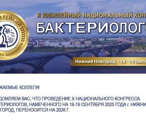 Уважаемые Коллеги! Уведомляем Вас, что проведение X Национального конгресса бактериологов, намеченного на 18-19 сентября 2025 года г. Нижний Новгород, переносится на 2026 г.Время и место проведения конгресса будет сообщено дополнительно при формировании плана мероприятий Роспотребнадзора на 2026 год. Основные научные направления Конгресса: Состояние и тенденции развития медицинской микробиологии: от классической микробиологии до геномных исследований. Современные […]